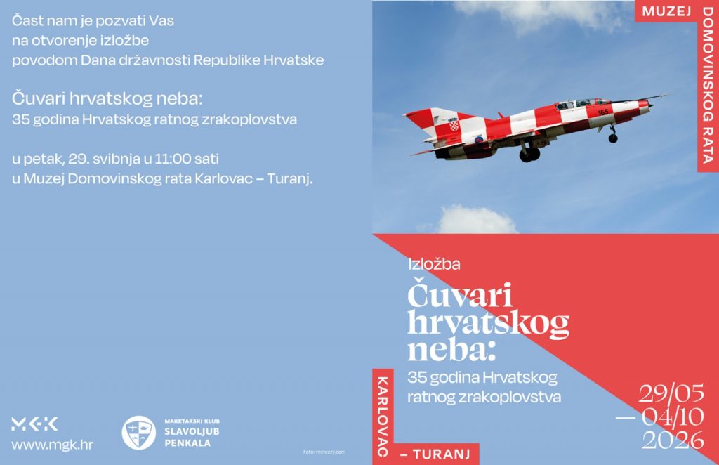 Maketarski klub Slavoljub Penkala vas poziva na otvorenje izložbe Čuvari hrvatskog neba, povodom obilježavanja 35 godina od osnutka Hrvatskog ratnog zrakoplovstva.